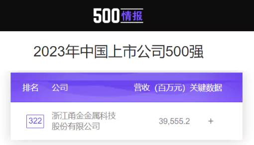 Business magazine Fortune released its latest China 500 companies list recently. with the total revenue hitting 39.56 billion yuan, Yongjin Corp is taking the 322 spot in the Fortune China 500 list.